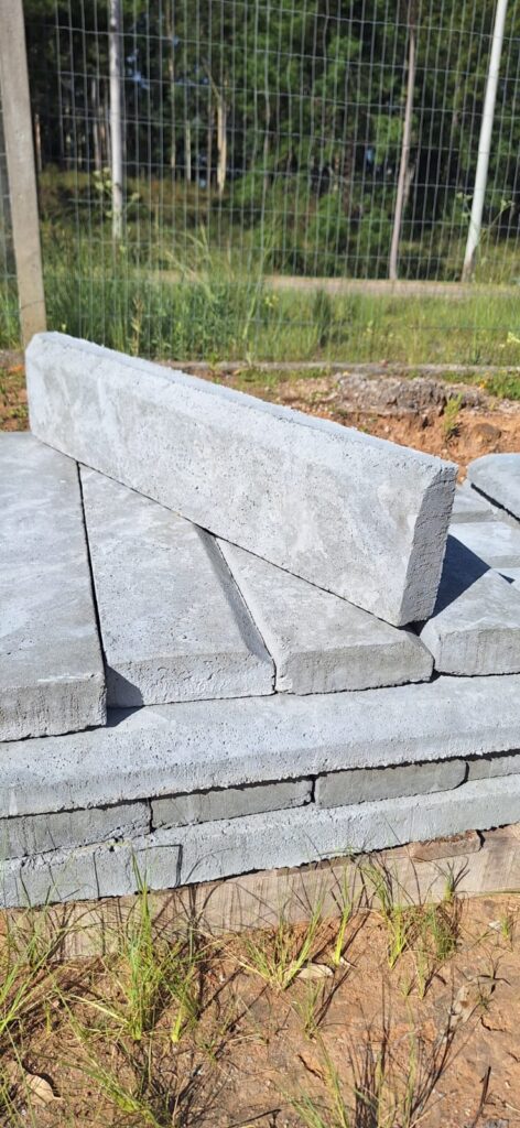 Elemento de concreto compacto utilizado para delimitar e organizar áreas residenciais, garantindo acabamento estético e contenção do piso ou solo.